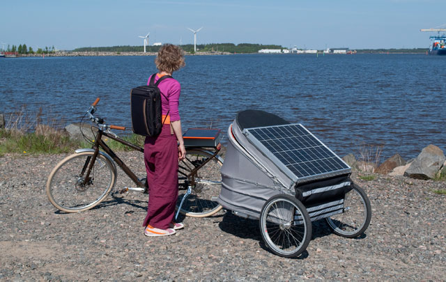The SR-Hab (Socially Responsive Habitat) project is a mobile, self-sustainable bicycle unit for urban commuting and dwelling, developed in collaboration with students from the Department of Mechanical Engineering at McGill University in Montreal. A big part of existence today is mobility. With growing environmental concerns, commuters are making efforts to be more eco-friendly. My solution to this demand combines a commuter bicycle with a habitat that can sustain basic living necessities ‘off the grid.’ The electricity generated by the user powers the appliances within the habitat such as lights, laptop, iPod and cooking instruments. <