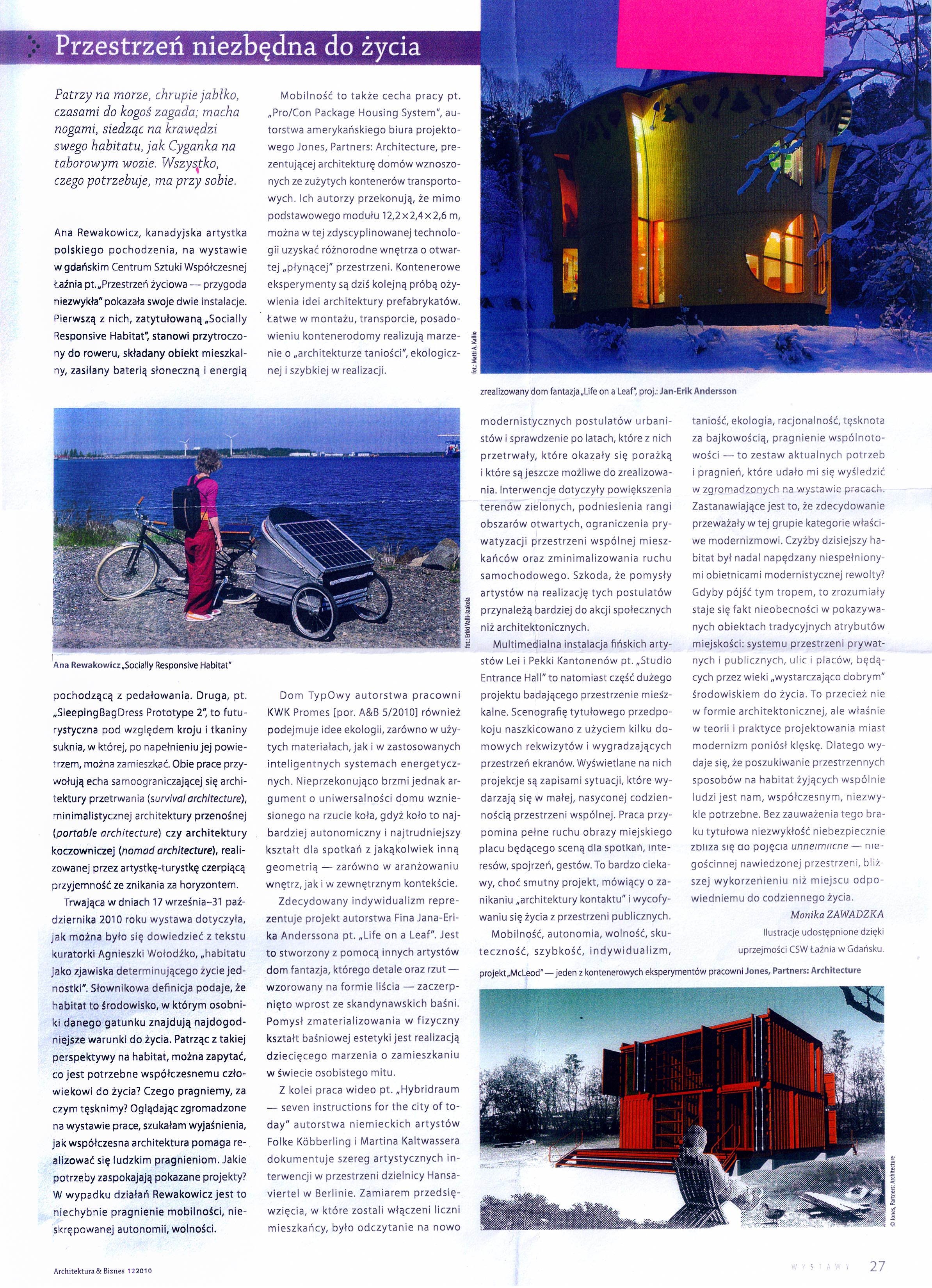 Zawadzka, Monika, “Przestrzen niezbedna do zycia”, Architekture & Biznes, PL, December 2010 (jpg)